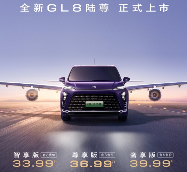 8月26日,新款别克GL8 陆尊PHEV上市,提供3款车型,售价区间为33.99-39.99万。