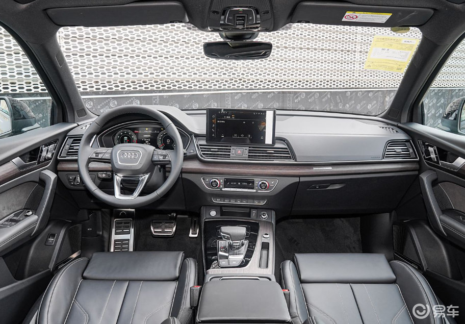 和外观相同,奥迪Q5L在内饰设计方面也展现出了极强的品质感。其中该车车内采用全新双皮面料包裹,细节处带有缝线、氛围灯带等元素装饰,为用户带来了彰显内在气质的独到感受。同时,新车取消了上一代中控台上的MMI旋钮及触控面板,转而采用全新的储物格设计,这赋予了该车更强的装载空间以及实用性。值得注意的是,该车还具备10.1英寸全新中控大屏及12.3英寸奥迪虚拟座舱增强版,其内部搭载全新MIB3信息娱乐系统以及全新Asterix应用商店,可实现近乎于智能手机的高度个性化设置。此外这两块屏幕加上Hud抬头数字显示系统,最终形成三屏联动布局,如此自由的视觉享受,怎能令人不爱?