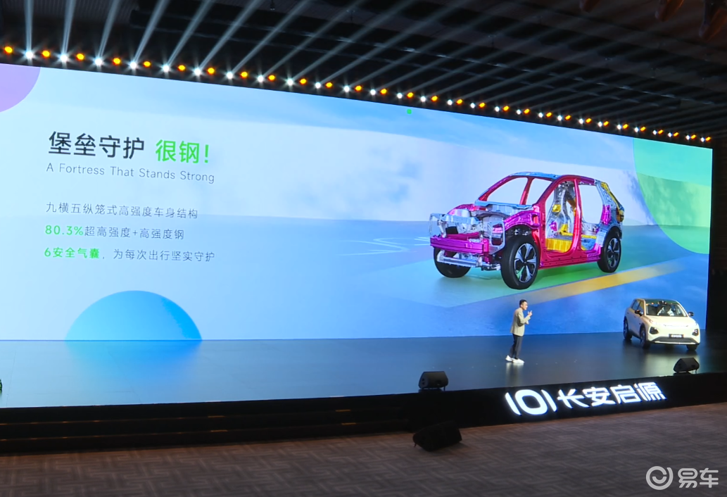 此外还采用“九横五纵”笼式车身,车身主体骨架高强钢占比80.3%,最高抗拉强度达到1500Mpa,热成型钢占比29%,安全到位。