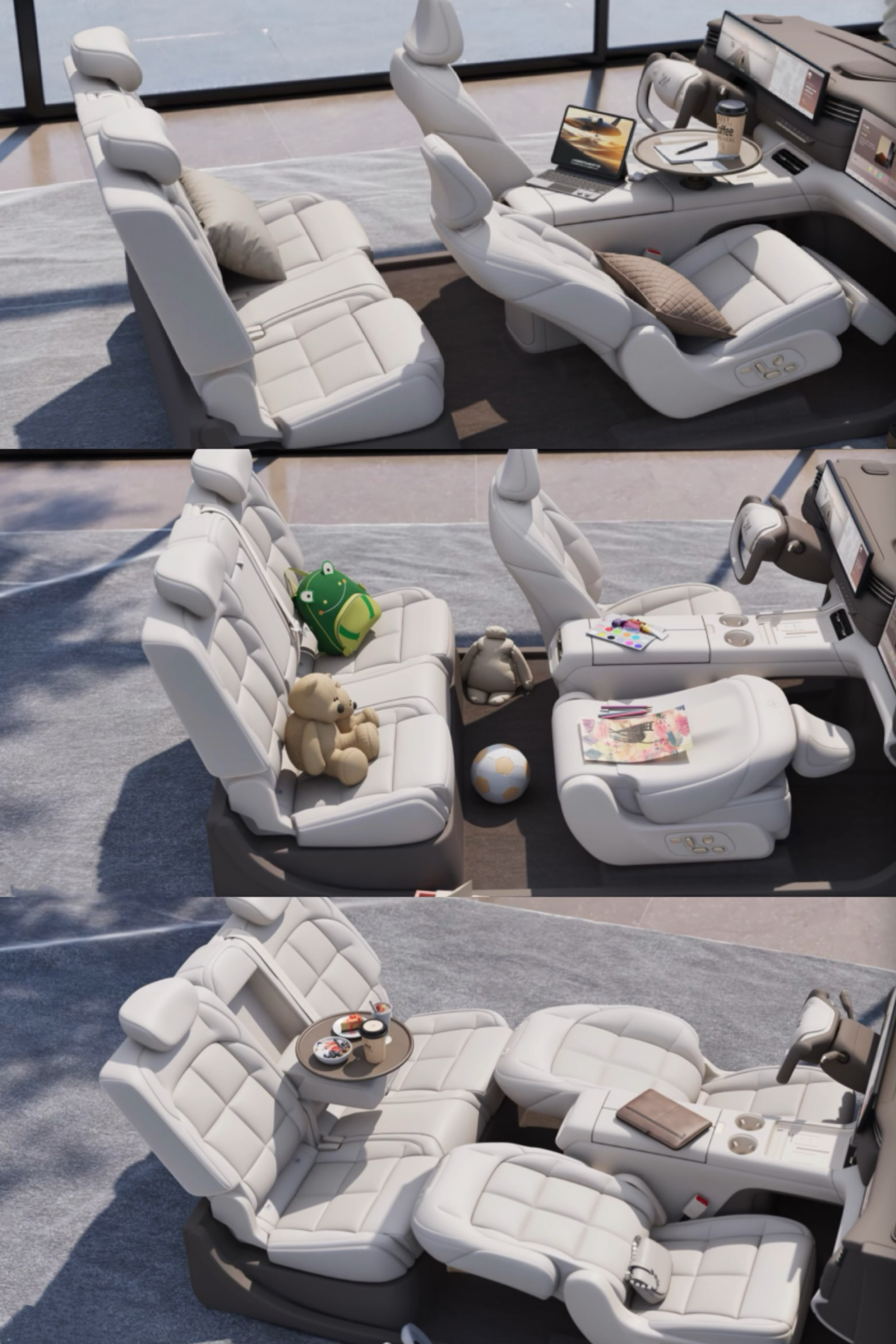 图为智己LS6副驾三种座椅模式
