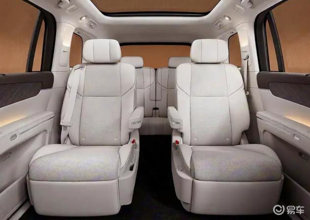 新车提供5座、6座和7座三种座椅布局。二排座椅配备了零重力座椅,带有腿托和独立扶手,支持120°零压躺姿和4向腿托调节。迎宾模式下,二排座椅可形成195mm的超宽中央通道。此外,二排还配备了遮阳帘、21.4英寸的吸顶屏、可调节温度从-6°C到50°C的车规级冷暖冰箱以及带嵌入式杯托设计的双折叠桌板等配置。