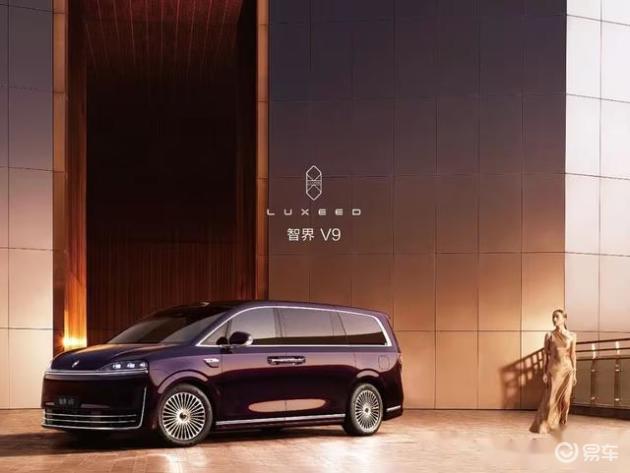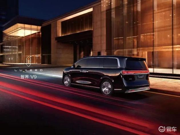 外观方面,智界V9采用了家族化的设计语言。前脸采用了标志性的设计,风格厚重且轮廓饱满,配备了贯穿式日行灯,两侧主灯造型家族化。前脸中部布局简约,采用封闭式车身设计,底部则采用运动且细腻的风格,点缀有镀铬条。