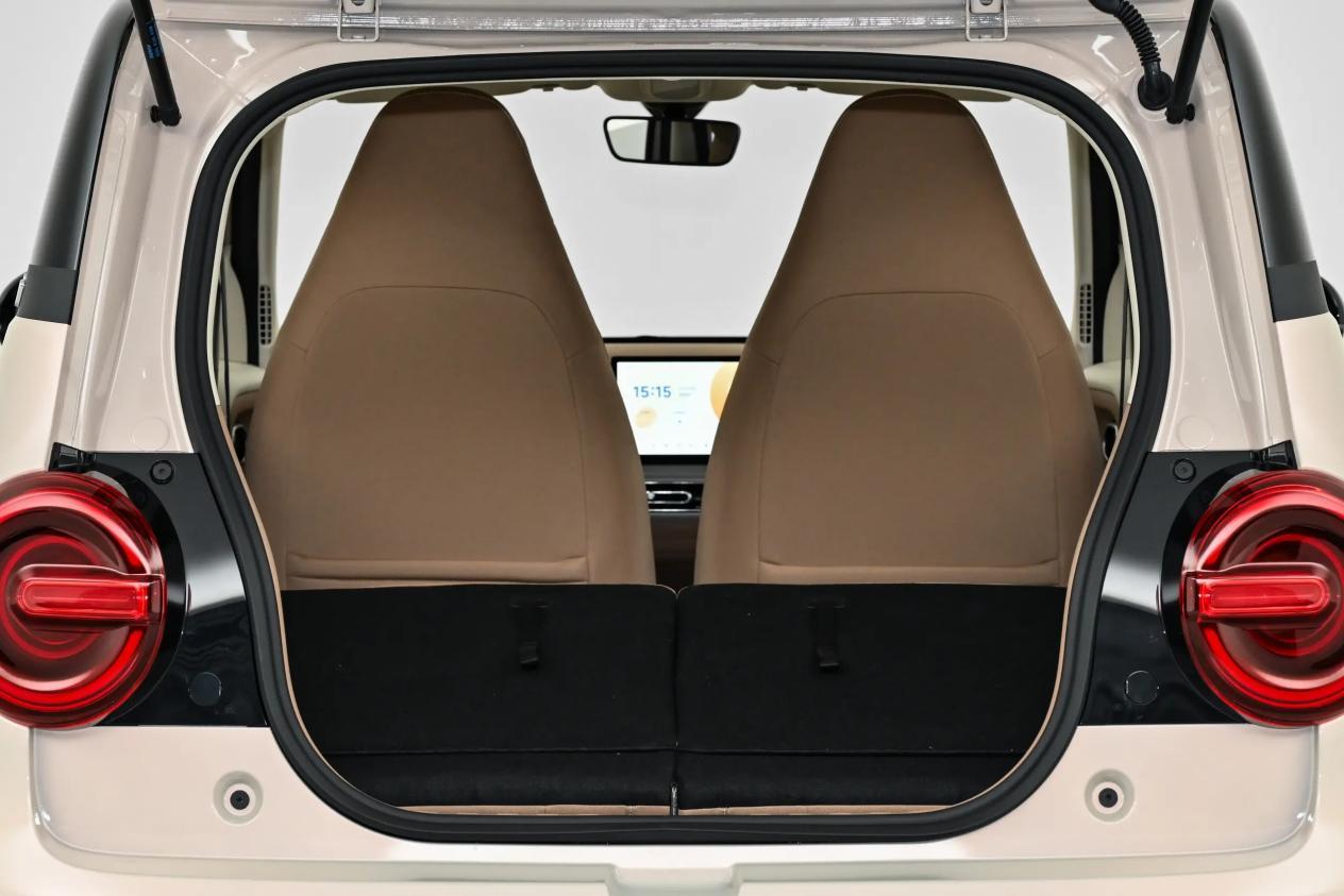 并且第五代宏光MINIEV在四门结构的基础上,还对车内的空间进行了优化升级,前后排座间距可达793mm,身高175cm的乘客坐进后排不会显得局促。在此基础上,车内还设计了多达20处人性化储物空间,中控随手就能放纸巾、水杯、化妆品,女生的包包也有专属位置。后备厢支持座椅放倒扩展,最大容积能达838L,日常买菜装东西、周末出游放行李箱和露营装备,基本都能轻松hold住。