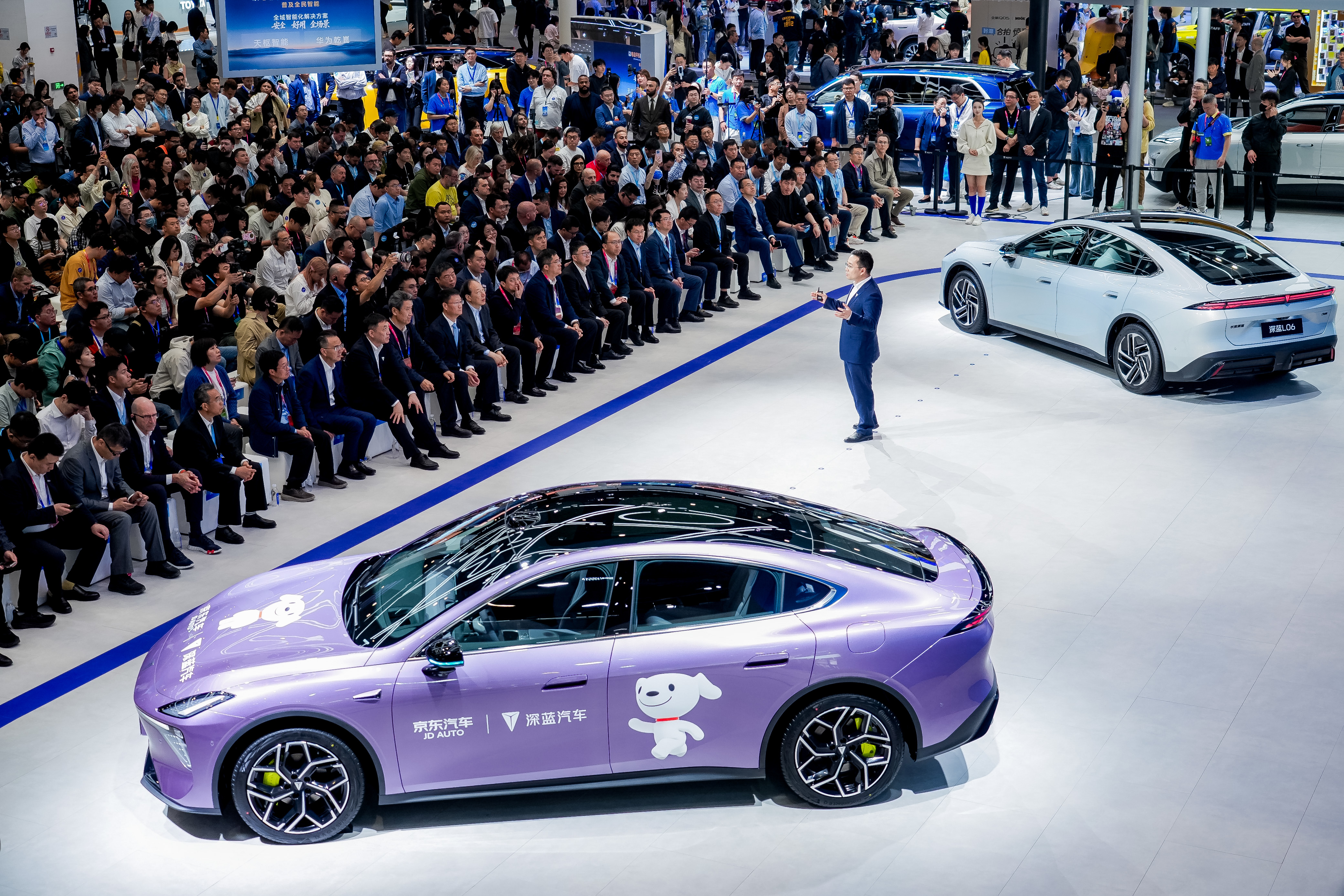 北京车展上,深蓝汽车展台重磅集结全系6款明星车型,展现品牌规模化、体系化的造车实力。