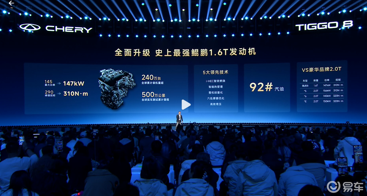 除此之外,发布会上全面展示了底盘方面的减震安全性能。整个底盘采用全框式后副车架、液压隔振系统、铝合金转向节与高性能减震器阀片等结构,配合中欧大师级调校,让瑞虎8在稳定性与舒适性之间实现理想平衡,真正做到“赛级民用,行稳致远”,为驾驶者带来澎湃而平顺的动力体验。