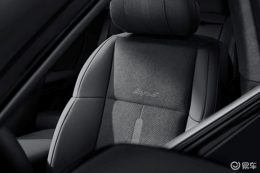 2. 用料:竞速灰版采用5.54 m²仿麂皮超纤绒+Nappa全粒面真皮拼接,座椅赛道纹理+Lafa5专属烫印;